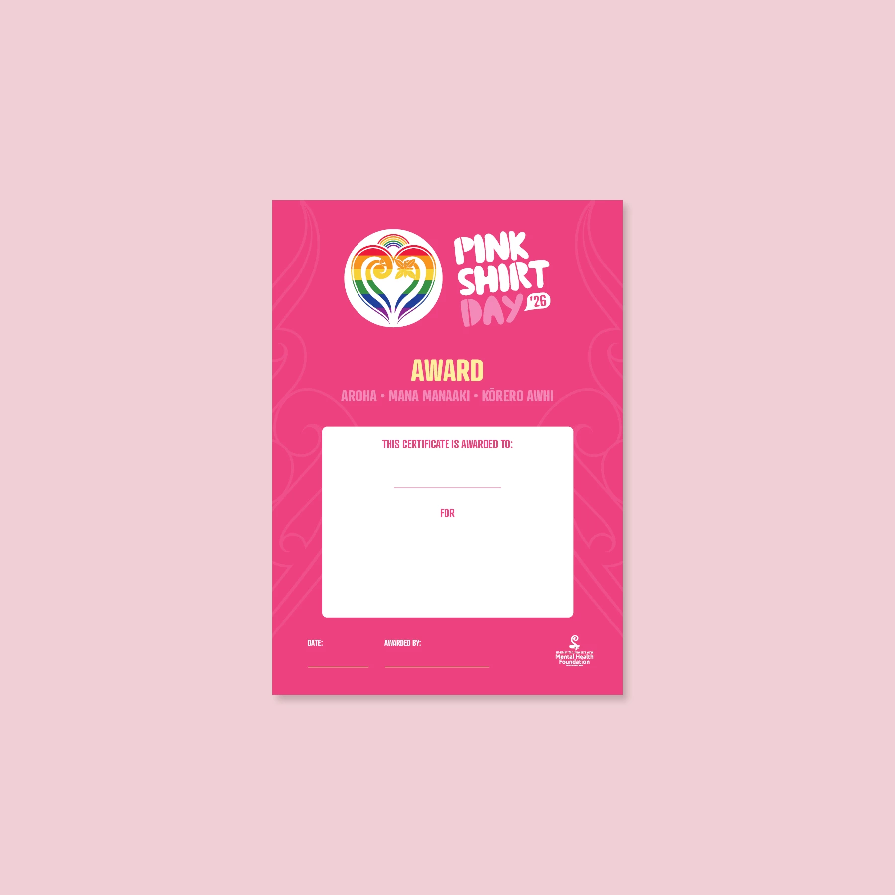 Recognise Pink Shirt Day values with personalised certificates at work or school.
